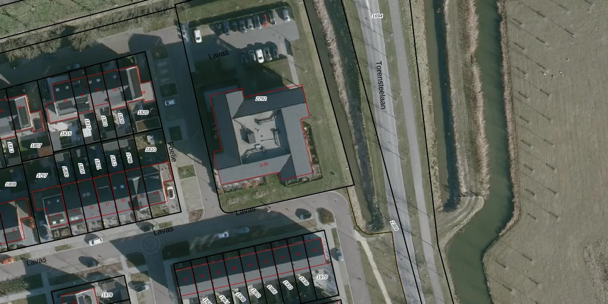 Het perceel waarop Lavas 18 staat heeft een oppervlakte van 3055 m². Dit is een zeer groot perceel. De perceeloppervlakte wordt geregistreerd door het Kadaster. Gedetailleerde informatie over de maten van dit perceel kunt u vinden in het rapport Kadastrale kaart met maatvoering van Lavas 18.