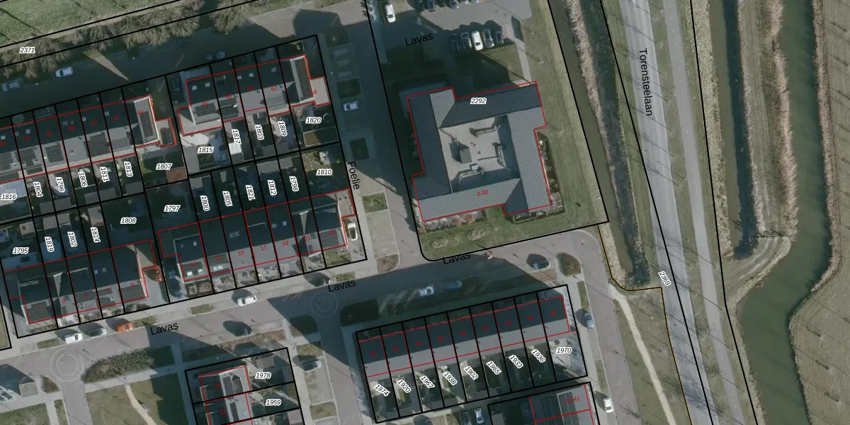 Het perceel waarop Lavas 6 staat heeft een oppervlakte van 3055 m². Dit is een zeer groot perceel. De perceeloppervlakte wordt geregistreerd door het Kadaster. Gedetailleerde informatie over de maten van dit perceel kunt u vinden in het rapport Kadastrale kaart met maatvoering van Lavas 6.
