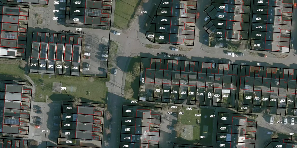 Gebruik de zoekbalk of klik op een perceel voor informatie over de adressen binnen dit perceel.