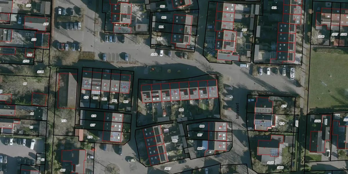 Het perceel waarop Merelerf 18 staat heeft een oppervlakte van 1160 m². Dit is een zeer groot perceel. De perceeloppervlakte wordt geregistreerd door het Kadaster. Gedetailleerde informatie over de maten van dit perceel kunt u vinden in het rapport Kadastrale kaart met maatvoering van Merelerf 18.