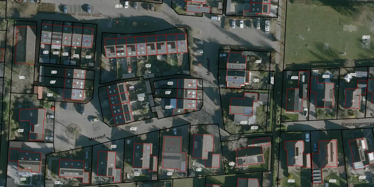 Het perceel waarop Merelerf 30 staat heeft een oppervlakte van 143 m². Dit is een middelgroot perceel. De perceeloppervlakte wordt geregistreerd door het Kadaster. Gedetailleerde informatie over de maten van dit perceel kunt u vinden in het rapport Kadastrale kaart met maatvoering van Merelerf 30.