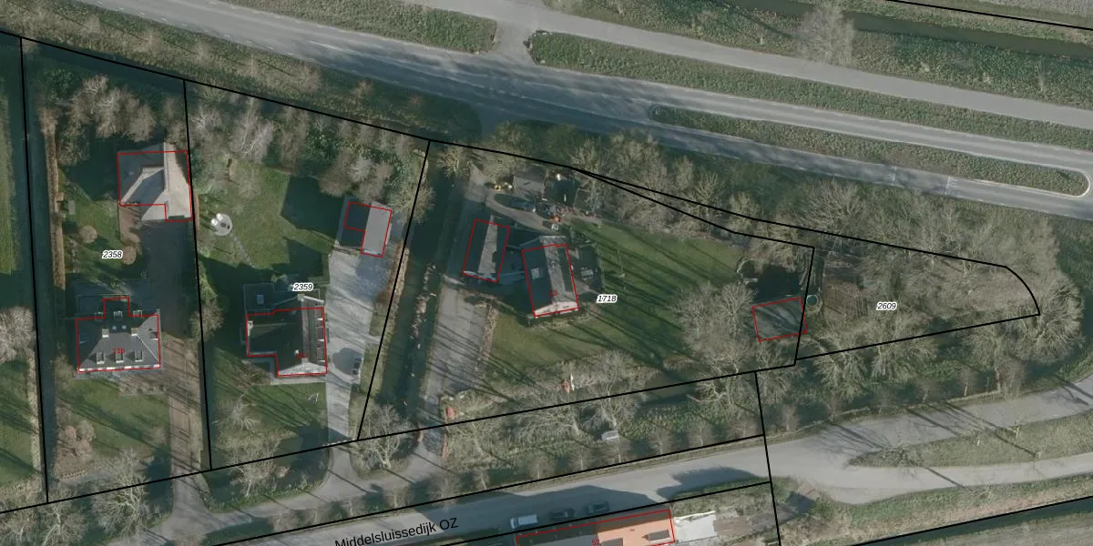 Het perceel waarop Middelsluissedijk OZ 13 staat heeft een oppervlakte van 2820 m². Dit is een zeer groot perceel. De perceeloppervlakte wordt geregistreerd door het Kadaster. Gedetailleerde informatie over de maten van dit perceel kunt u vinden in het rapport Kadastrale kaart met maatvoering van Middelsluissedijk OZ 13.