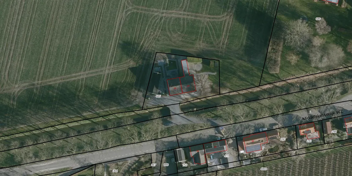 Het perceel waarop Middelsluissedijk WZ 26 staat heeft een oppervlakte van 1040 m². Dit is een zeer groot perceel. De perceeloppervlakte wordt geregistreerd door het Kadaster. Gedetailleerde informatie over de maten van dit perceel kunt u vinden in het rapport Kadastrale kaart met maatvoering van Middelsluissedijk WZ 26.
