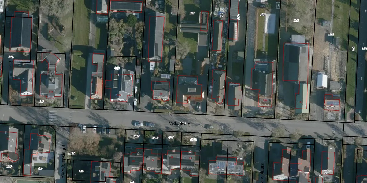 Het perceel waarop Middelweg 17 staat heeft een oppervlakte van 2140 m². Dit is een zeer groot perceel. De perceeloppervlakte wordt geregistreerd door het Kadaster. Gedetailleerde informatie over de maten van dit perceel kunt u vinden in het rapport Kadastrale kaart met maatvoering van Middelweg 17.