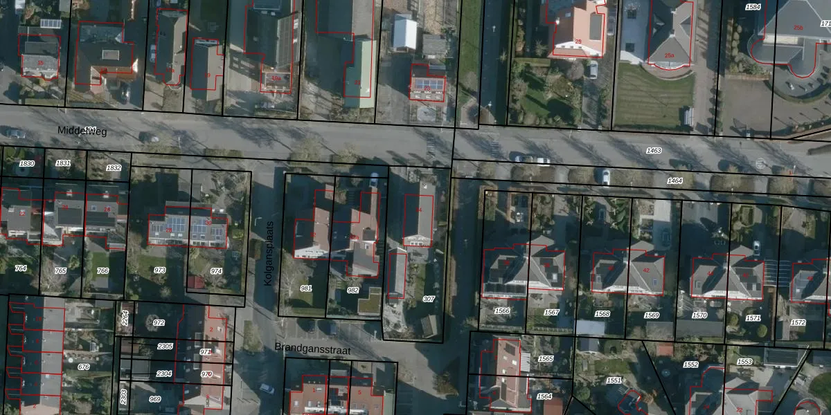 Het perceel waarop Middelweg 34 staat heeft een oppervlakte van 615 m². Dit is een groot perceel. De perceeloppervlakte wordt geregistreerd door het Kadaster. Gedetailleerde informatie over de maten van dit perceel kunt u vinden in het rapport Kadastrale kaart met maatvoering van Middelweg 34.