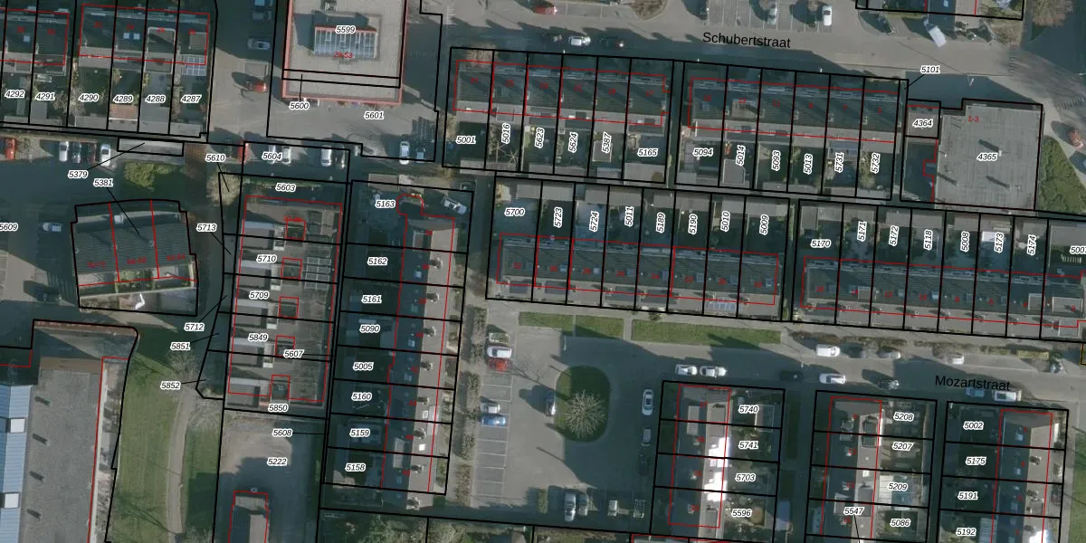 Gebruik de zoekbalk of klik op een perceel voor informatie over de adressen binnen dit perceel.