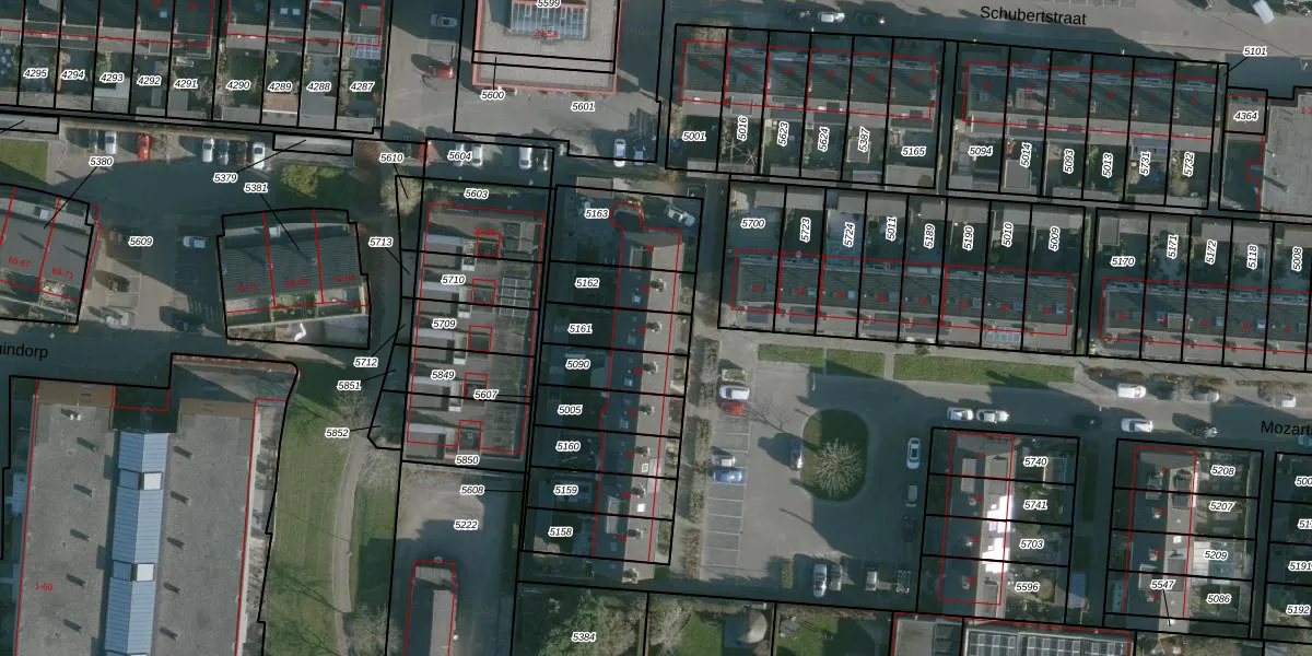 Mozartstraat 38 is gelegen op kadastraal perceel NMD00B5161. Deze kadastrale aanduiding is uniek en wordt gebruikt door het Kadaster om eigendomsrechten en andere zakelijke rechten vast te leggen. Het perceel maakt onderdeel uit van de kadastrale gemeente Numansdorp.
