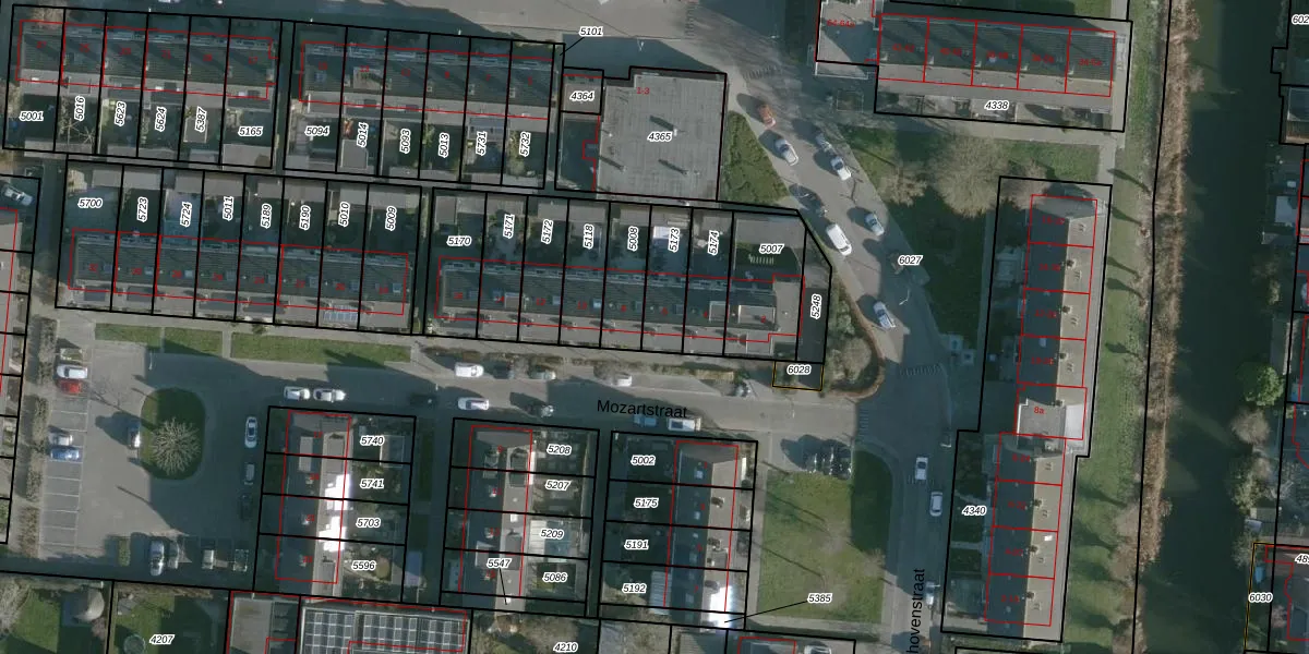 Mozartstraat 6 is gelegen op kadastraal perceel NMD00B5173. Deze kadastrale aanduiding is uniek en wordt gebruikt door het Kadaster om eigendomsrechten en andere zakelijke rechten vast te leggen. Het perceel maakt onderdeel uit van de kadastrale gemeente Numansdorp.