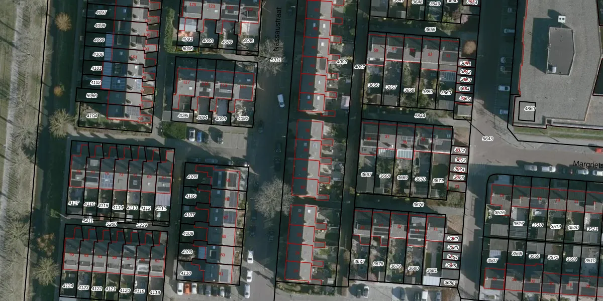 Het perceel waarop Nassaustraat 36 staat heeft een oppervlakte van 2915 m². Dit is een zeer groot perceel. De perceeloppervlakte wordt geregistreerd door het Kadaster. Gedetailleerde informatie over de maten van dit perceel kunt u vinden in het rapport Kadastrale kaart met maatvoering van Nassaustraat 36.