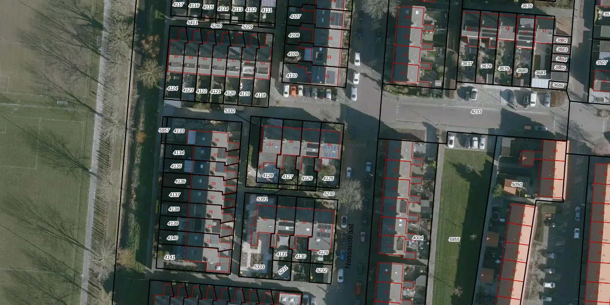 Nassaustraat 47 is gelegen op kadastraal perceel NMD00B4126. Deze kadastrale aanduiding is uniek en wordt gebruikt door het Kadaster om eigendomsrechten en andere zakelijke rechten vast te leggen. Het perceel maakt onderdeel uit van de kadastrale gemeente Numansdorp.