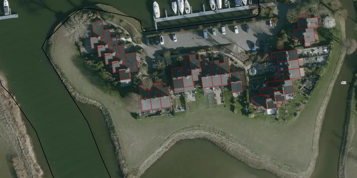 Het perceel waarop het adres ligt is NMD00-D-441. De afkorting 'NMD00' staat voor kadastrale gemeente Numansdorp. Het perceel is met 17,1 ha relatief groot. Het gemiddelde ligt in de kadastrale gemeente Numansdorp op 9320,43 m². Het grootste perceel in de kadastrale gemeente is 1,27 km². Het kleinste perceel heeft een oppervlakte van 0 m². Op het perceel liggen in totaal 195 adressen. De huidige grenzen van het perceel zijn digitaal in de Basisregistratie Kadaster (BRK) geregistreerd op 27-11-2019.