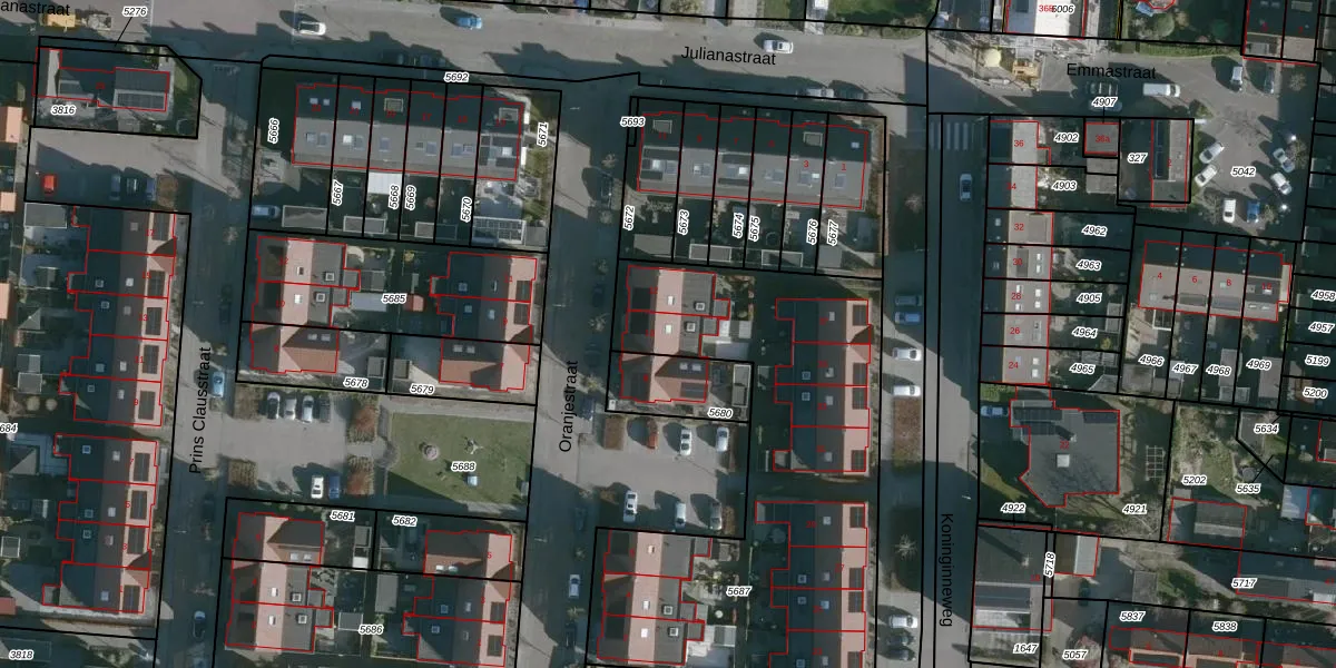 Het perceel waarop Oranjestraat 10 staat heeft een oppervlakte van 2045 m². Dit is een zeer groot perceel. De perceeloppervlakte wordt geregistreerd door het Kadaster. Gedetailleerde informatie over de maten van dit perceel kunt u vinden in het rapport Kadastrale kaart met maatvoering van Oranjestraat 10.