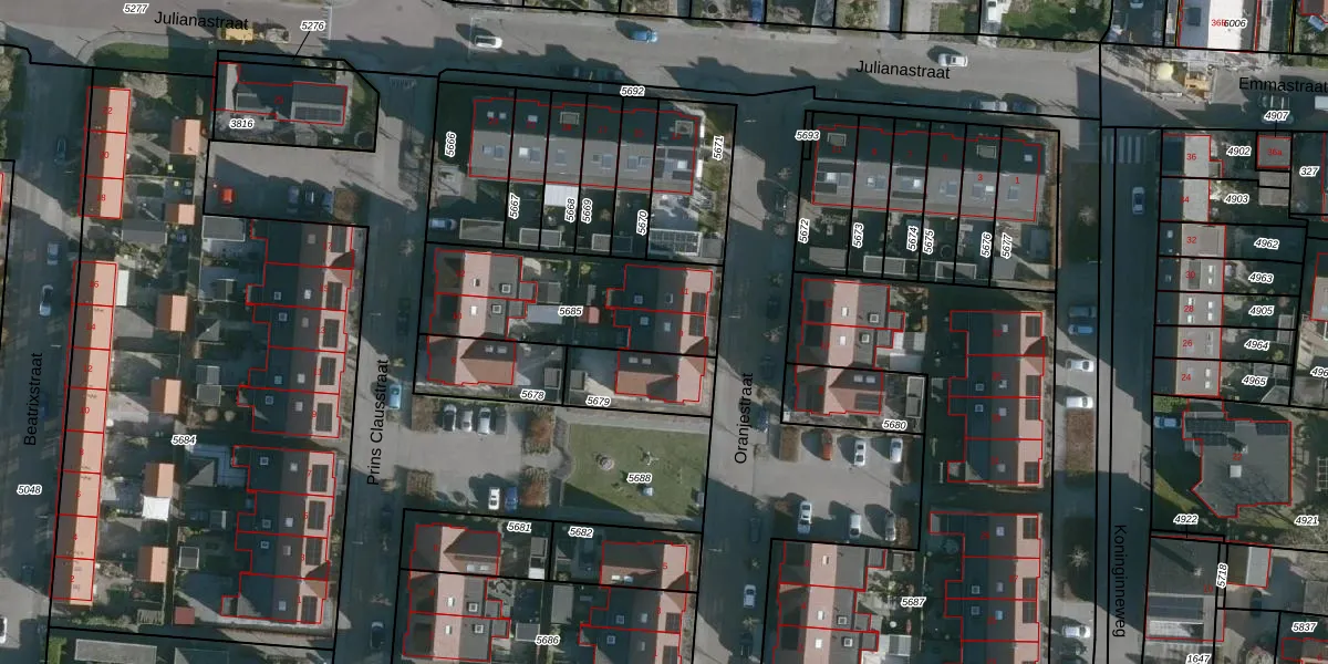 Oranjestraat 9 is gelegen op kadastraal perceel NMD00B5685. Deze kadastrale aanduiding is uniek en wordt gebruikt door het Kadaster om eigendomsrechten en andere zakelijke rechten vast te leggen. Het perceel maakt onderdeel uit van de kadastrale gemeente Numansdorp.