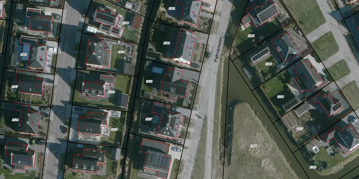 Het perceel waarop Paltrokmolen 22 staat heeft een oppervlakte van 708 m². Dit is een groot perceel. De perceeloppervlakte wordt geregistreerd door het Kadaster. Gedetailleerde informatie over de maten van dit perceel kunt u vinden in het rapport Kadastrale kaart met maatvoering van Paltrokmolen 22.