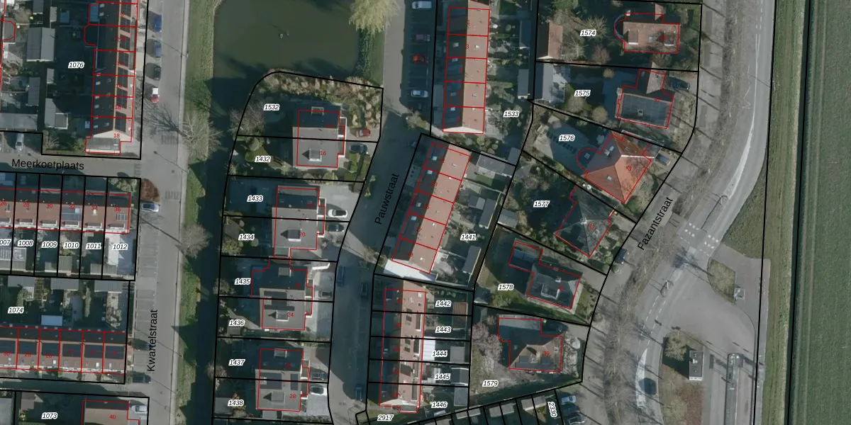 Het perceel waarop Pauwstraat 15 staat heeft een oppervlakte van 774 m². Dit is een groot perceel. De perceeloppervlakte wordt geregistreerd door het Kadaster. Gedetailleerde informatie over de maten van dit perceel kunt u vinden in het rapport Kadastrale kaart met maatvoering van Pauwstraat 15.