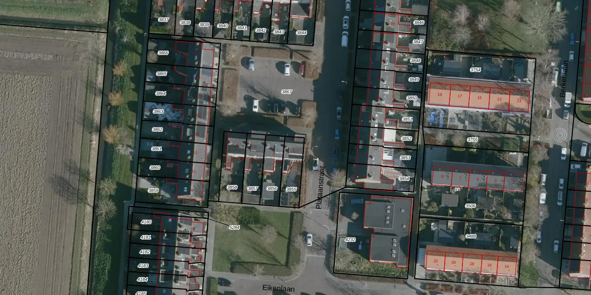 Gebruik de zoekbalk of klik op een perceel voor informatie over de adressen binnen dit perceel.