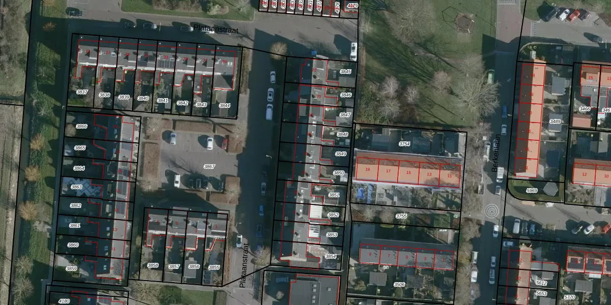 Plataanstraat 14 is gelegen op kadastraal perceel NMD00B3849. Deze kadastrale aanduiding is uniek en wordt gebruikt door het Kadaster om eigendomsrechten en andere zakelijke rechten vast te leggen. Het perceel maakt onderdeel uit van de kadastrale gemeente Numansdorp.