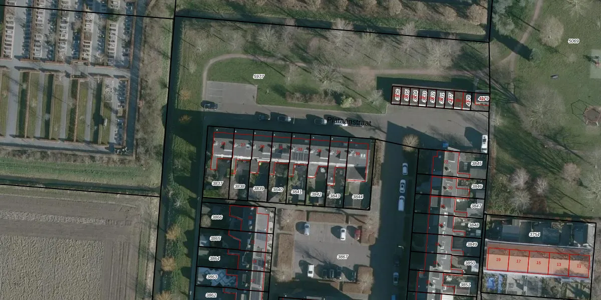 Plataanstraat 33 is gelegen op kadastraal perceel NMD00B3841. Deze kadastrale aanduiding is uniek en wordt gebruikt door het Kadaster om eigendomsrechten en andere zakelijke rechten vast te leggen. Het perceel maakt onderdeel uit van de kadastrale gemeente Numansdorp.