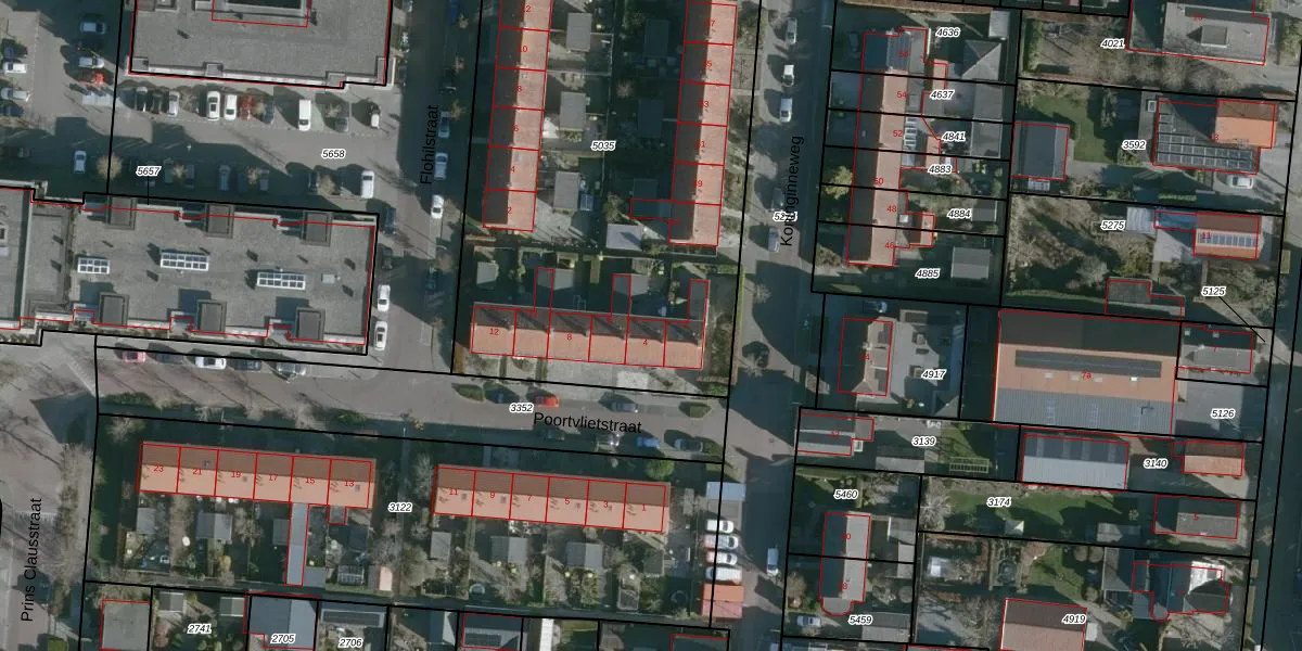 Het perceel waarop Poortvlietstraat 4 staat heeft een oppervlakte van 3524 m². Dit is een zeer groot perceel. De perceeloppervlakte wordt geregistreerd door het Kadaster. Gedetailleerde informatie over de maten van dit perceel kunt u vinden in het rapport Kadastrale kaart met maatvoering van Poortvlietstraat 4.