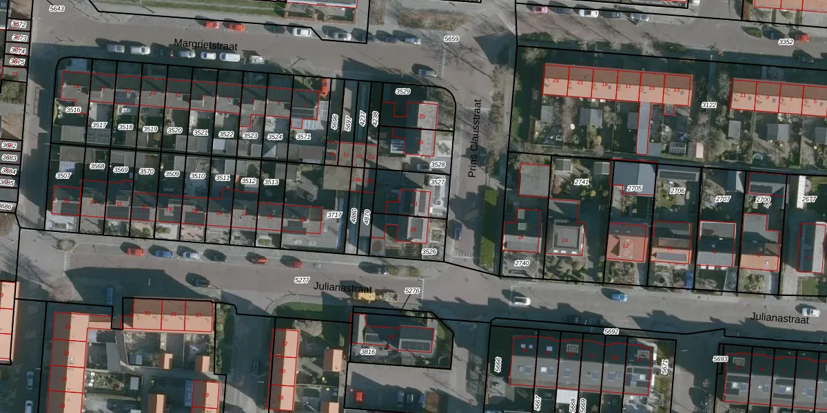 Het perceel waarop Prins Clausstraat 21 staat heeft een oppervlakte van 191 m². Dit is een middelgroot perceel. De perceeloppervlakte wordt geregistreerd door het Kadaster. Gedetailleerde informatie over de maten van dit perceel kunt u vinden in het rapport Kadastrale kaart met maatvoering van Prins Clausstraat 21.