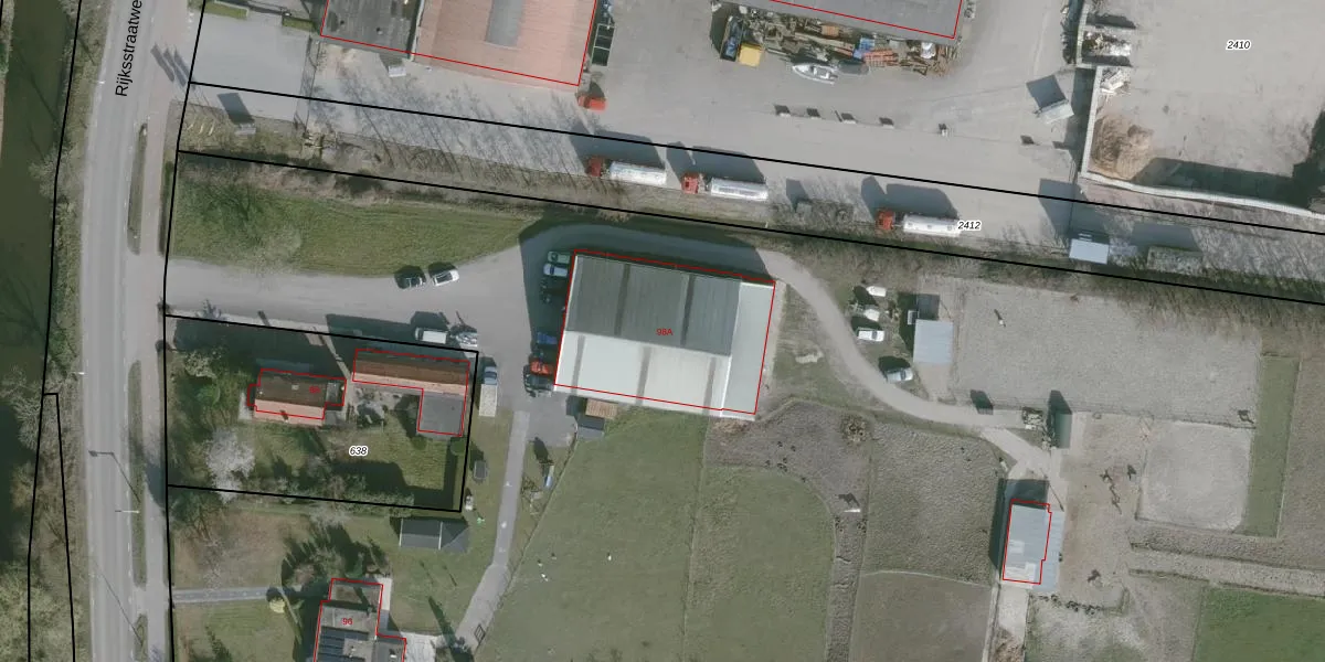 Het perceel waarop Rijksstraatweg 98-A staat heeft een oppervlakte van 2,5 ha. Dit is een zeer groot perceel. De perceeloppervlakte wordt geregistreerd door het Kadaster. Gedetailleerde informatie over de maten van dit perceel kunt u vinden in het rapport Kadastrale kaart met maatvoering van Rijksstraatweg 98-A.