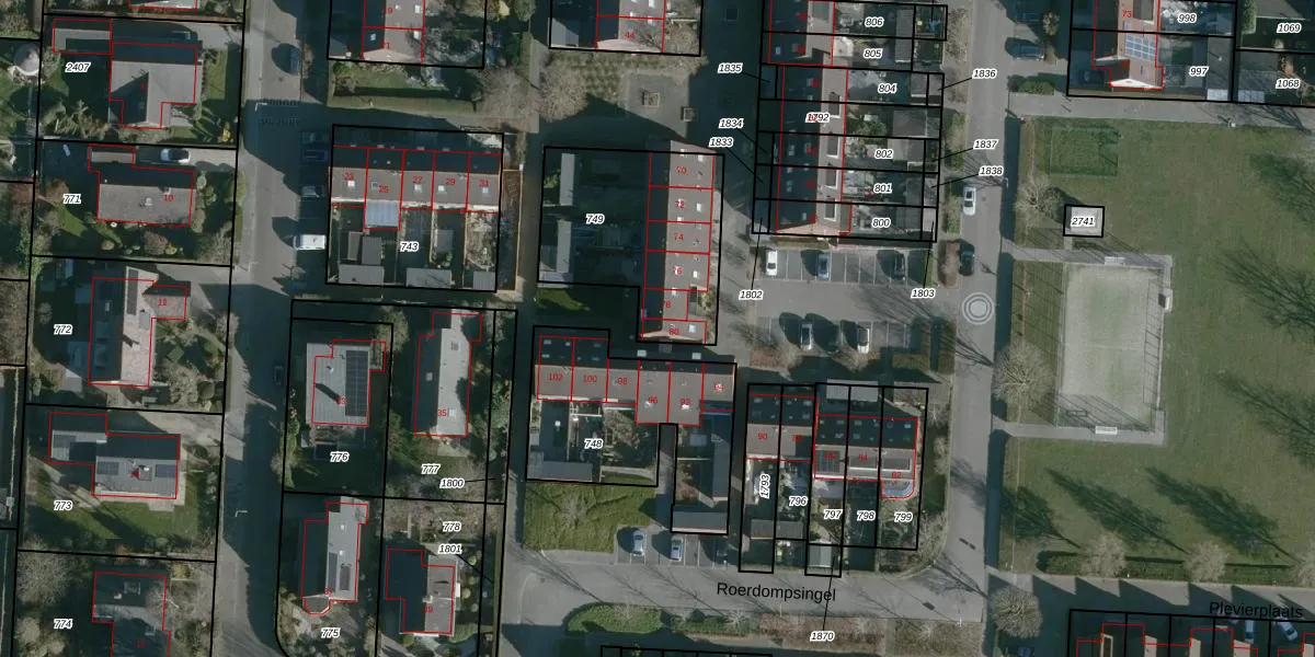 Het perceel waarop Roerdompsingel 80 staat heeft een oppervlakte van 663 m². Dit is een groot perceel. De perceeloppervlakte wordt geregistreerd door het Kadaster. Gedetailleerde informatie over de maten van dit perceel kunt u vinden in het rapport Kadastrale kaart met maatvoering van Roerdompsingel 80.