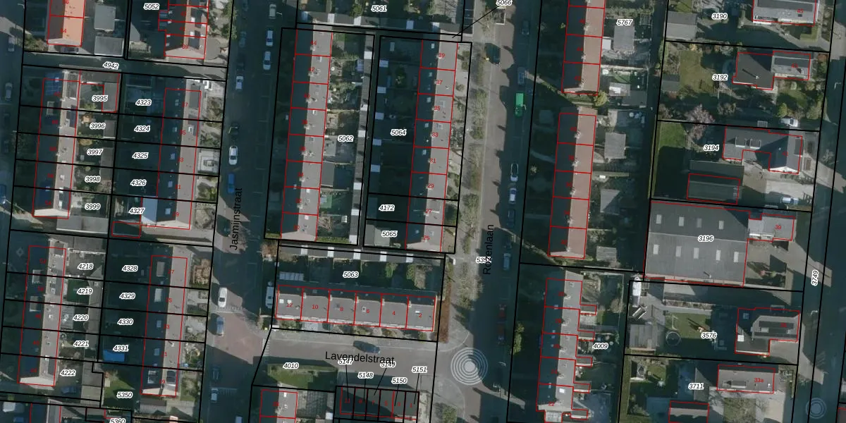 Gebruik de zoekbalk of klik op een perceel voor informatie over de adressen binnen dit perceel.