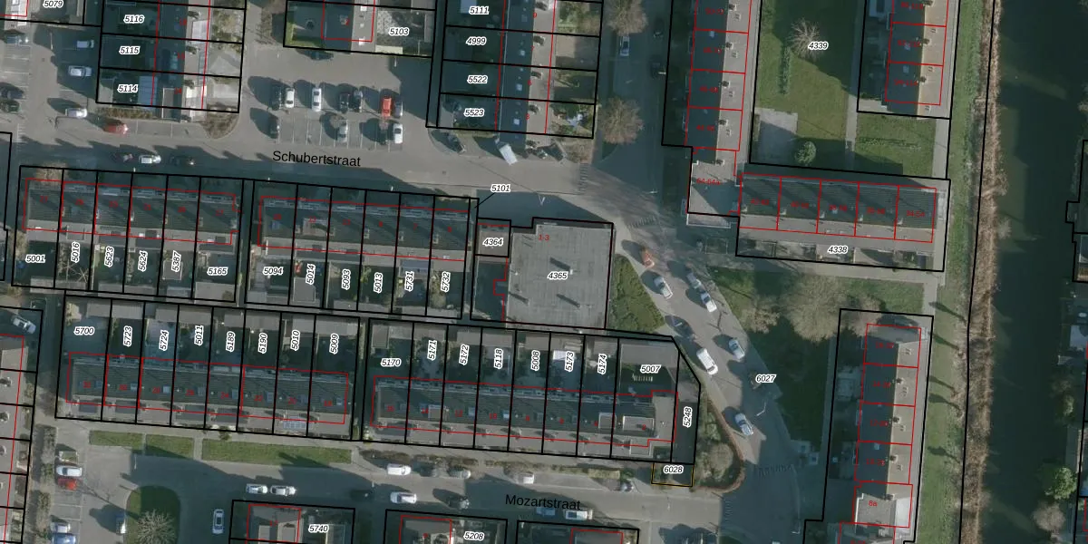 Gebruik de zoekbalk of klik op een perceel voor informatie over de adressen binnen dit perceel.