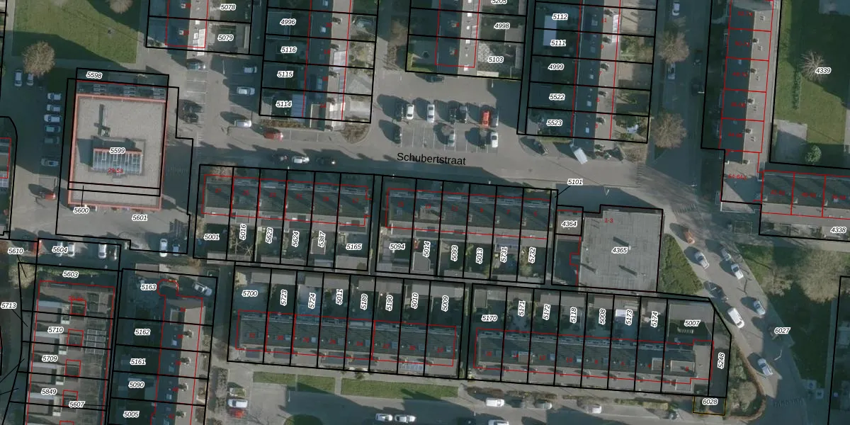 Het perceel waarop Schubertstraat 13 staat heeft een oppervlakte van 142 m². Dit is een middelgroot perceel. De perceeloppervlakte wordt geregistreerd door het Kadaster. Gedetailleerde informatie over de maten van dit perceel kunt u vinden in het rapport Kadastrale kaart met maatvoering van Schubertstraat 13.