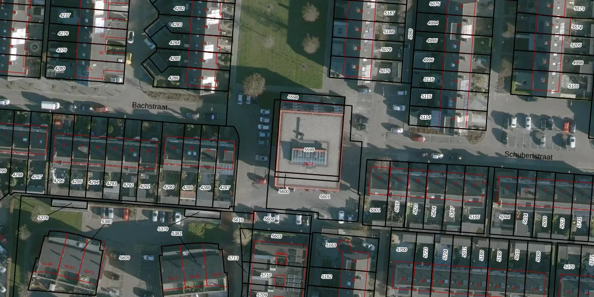 Het perceel waarop Schubertstraat 35 staat heeft een oppervlakte van 523 m². Dit is een groot perceel. De perceeloppervlakte wordt geregistreerd door het Kadaster. Gedetailleerde informatie over de maten van dit perceel kunt u vinden in het rapport Kadastrale kaart met maatvoering van Schubertstraat 35.