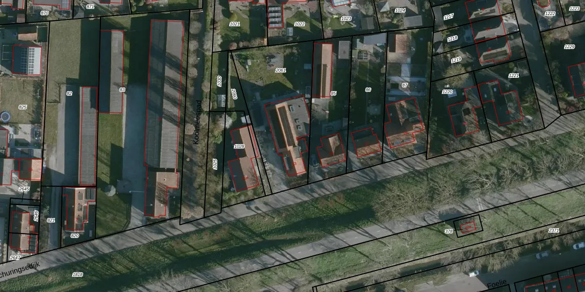 Het perceel waarop Schuringsedijk 13 staat heeft een oppervlakte van 1028 m². Dit is een zeer groot perceel. De perceeloppervlakte wordt geregistreerd door het Kadaster. Gedetailleerde informatie over de maten van dit perceel kunt u vinden in het rapport Kadastrale kaart met maatvoering van Schuringsedijk 13.