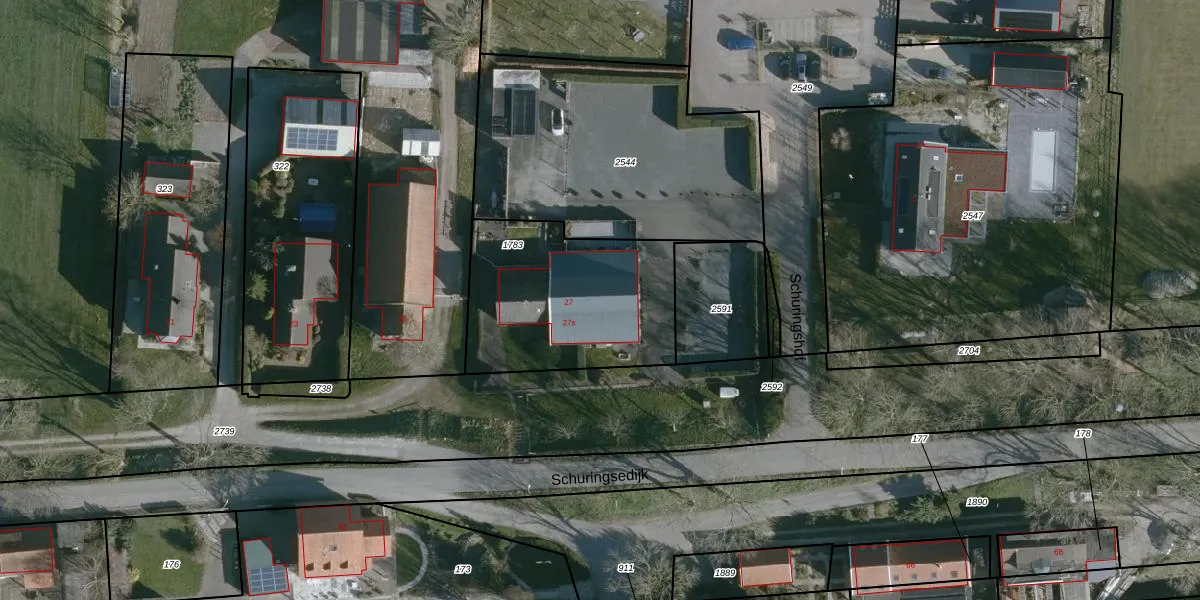 Het perceel waarop Schuringsedijk 27-s staat heeft een oppervlakte van 815 m². Dit is een groot perceel. De perceeloppervlakte wordt geregistreerd door het Kadaster. Gedetailleerde informatie over de maten van dit perceel kunt u vinden in het rapport Kadastrale kaart met maatvoering van Schuringsedijk 27-s.