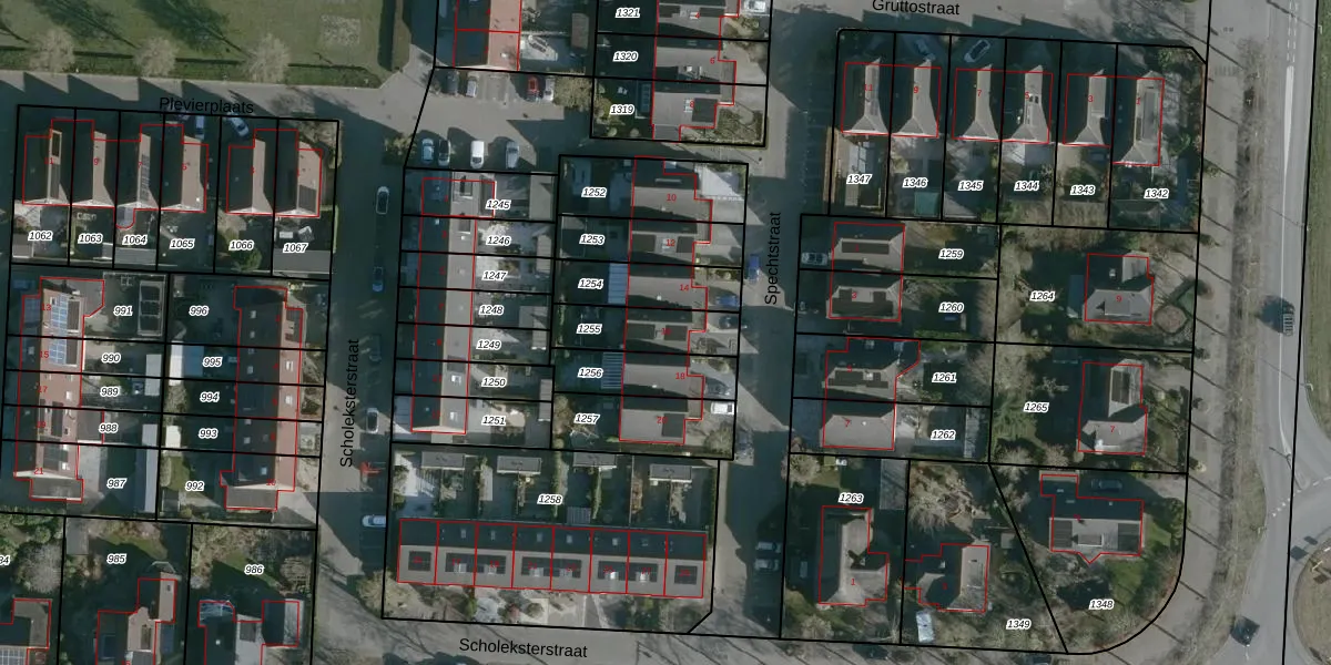 Gebruik de zoekbalk of klik op een perceel voor informatie over de adressen binnen dit perceel.