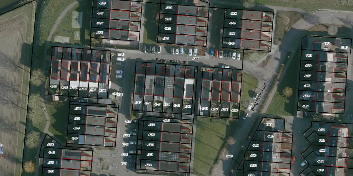 Gebruik de zoekbalk of klik op een perceel voor informatie over de adressen binnen dit perceel.