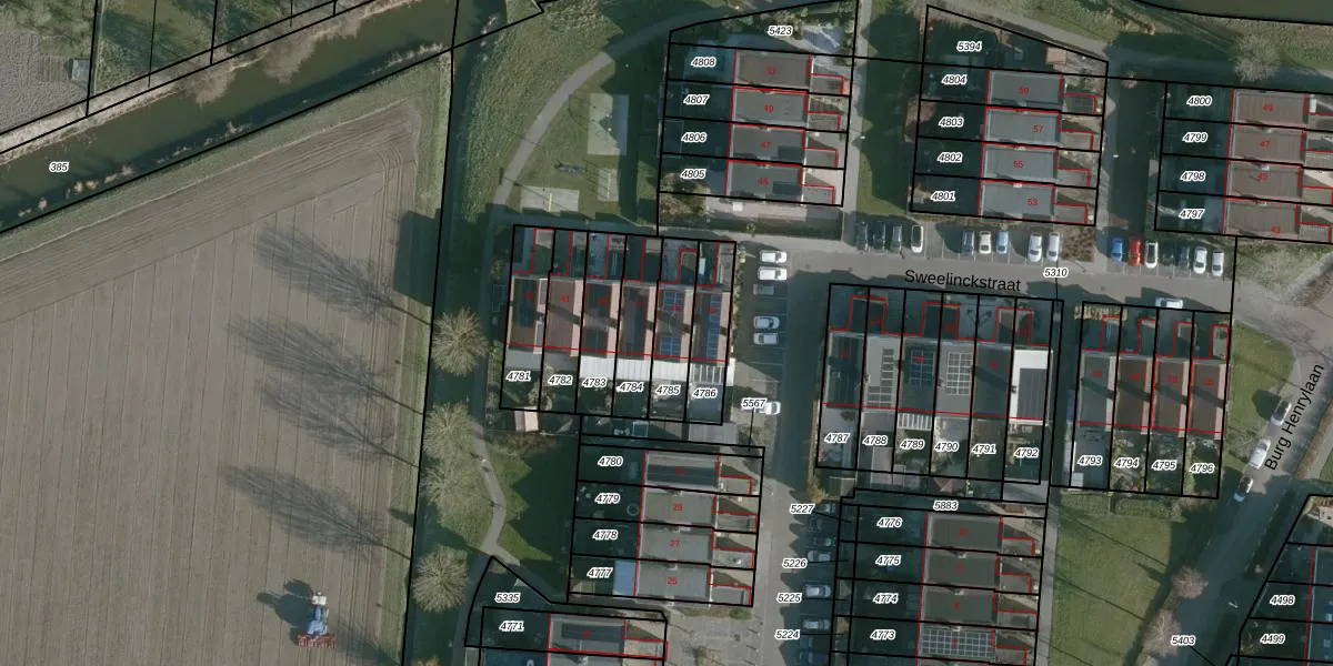 Gebruik de zoekbalk of klik op een perceel voor informatie over de adressen binnen dit perceel.