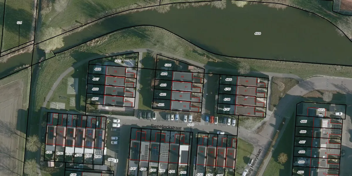 Sweelinckstraat 57 is gelegen op kadastraal perceel NMD00B4803. Deze kadastrale aanduiding is uniek en wordt gebruikt door het Kadaster om eigendomsrechten en andere zakelijke rechten vast te leggen. Het perceel maakt onderdeel uit van de kadastrale gemeente Numansdorp.