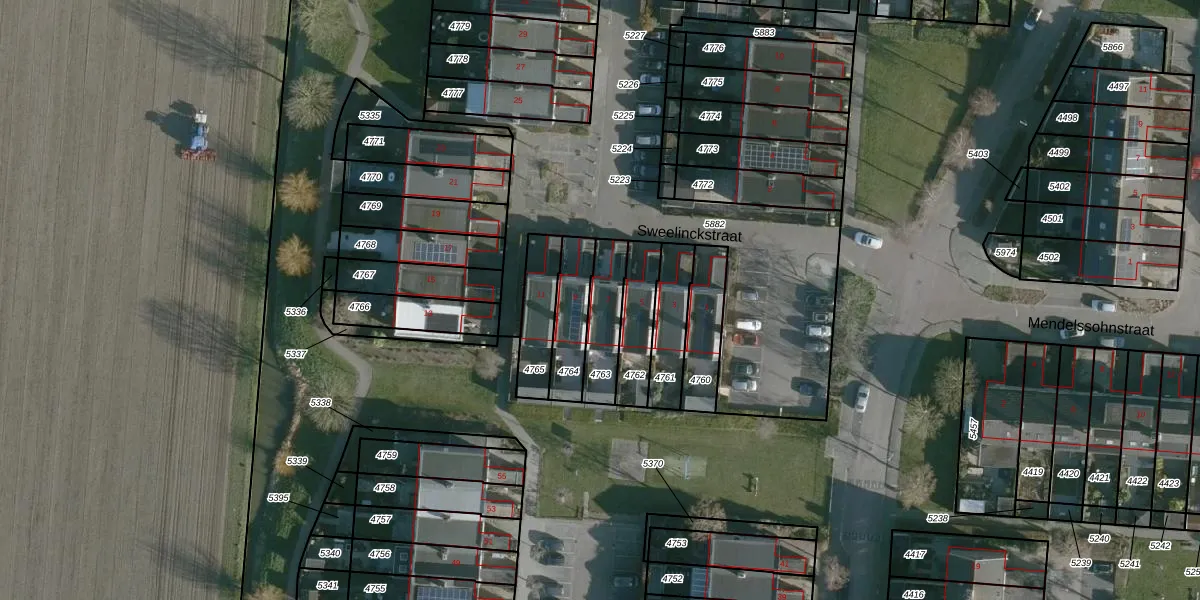 Sweelinckstraat 7 is gelegen op kadastraal perceel NMD00B4763. Deze kadastrale aanduiding is uniek en wordt gebruikt door het Kadaster om eigendomsrechten en andere zakelijke rechten vast te leggen. Het perceel maakt onderdeel uit van de kadastrale gemeente Numansdorp.
