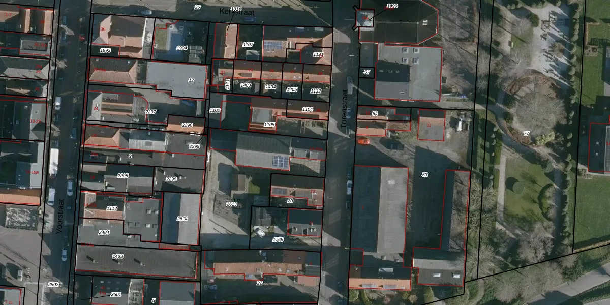 Het perceel waarop Torenstraat 15 staat heeft een oppervlakte van 999 m². Dit is een groot perceel. De perceeloppervlakte wordt geregistreerd door het Kadaster. Gedetailleerde informatie over de maten van dit perceel kunt u vinden in het rapport Kadastrale kaart met maatvoering van Torenstraat 15.