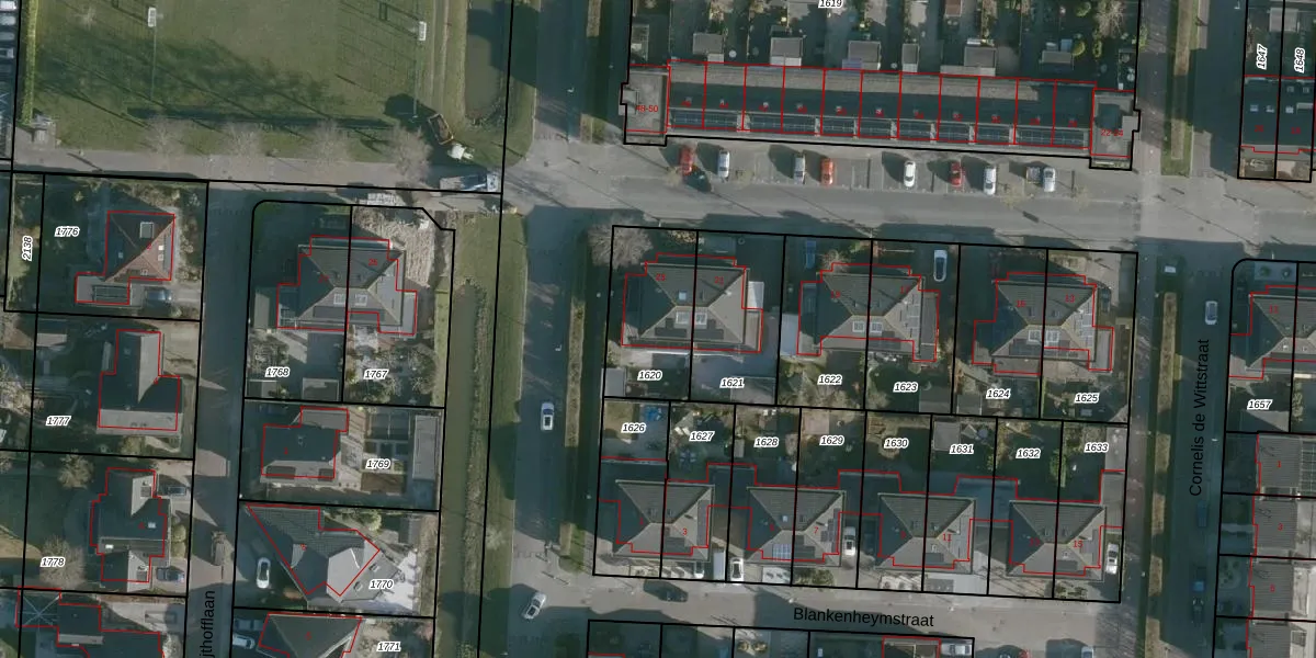 Gebruik de zoekbalk of klik op een perceel voor informatie over de adressen binnen dit perceel.