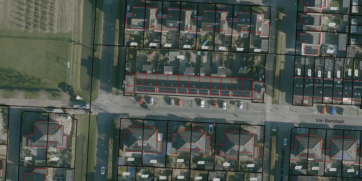 Het perceel waarop Van Barrylaan 38 staat heeft een oppervlakte van 2015 m². Dit is een zeer groot perceel. De perceeloppervlakte wordt geregistreerd door het Kadaster. Gedetailleerde informatie over de maten van dit perceel kunt u vinden in het rapport Kadastrale kaart met maatvoering van Van Barrylaan 38.