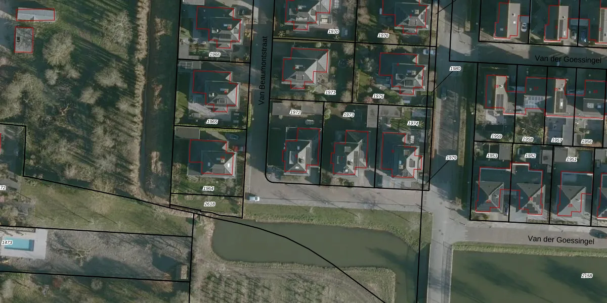 Gebruik de zoekbalk of klik op een perceel voor informatie over de adressen binnen dit perceel.
