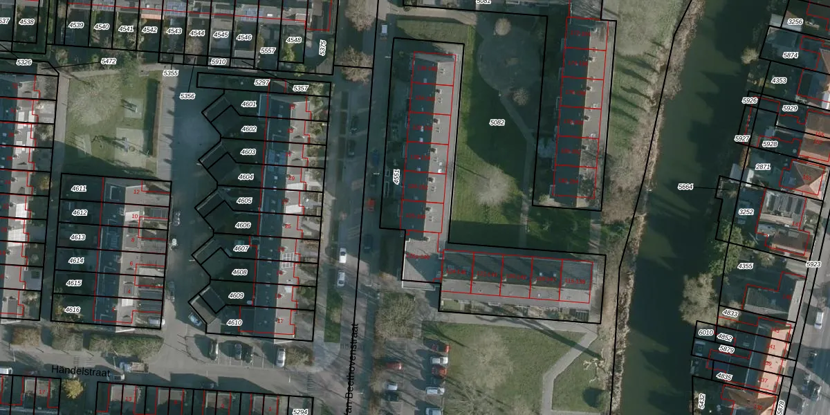 Het perceel waarop Van Beethovenstraat 126 staat heeft een oppervlakte van 1530 m². Dit is een zeer groot perceel. De perceeloppervlakte wordt geregistreerd door het Kadaster. Gedetailleerde informatie over de maten van dit perceel kunt u vinden in het rapport Kadastrale kaart met maatvoering van Van Beethovenstraat 126.