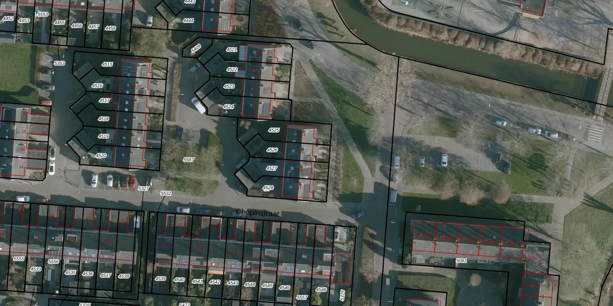 Gebruik de zoekbalk of klik op een perceel voor informatie over de adressen binnen dit perceel.