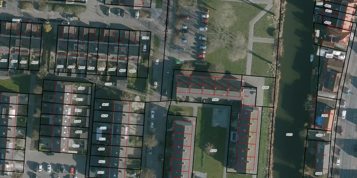 Het perceel waarop het adres ligt is NMD00-B-5083. De afkorting 'NMD00' staat voor kadastrale gemeente Numansdorp. Het perceel is kleiner dan gemiddeld in Numansdorp. Het perceel is 1416 m² groot, terwijl het gemiddelde ligt op 9320,43 m². De grootste perceeloppervlakte in de kadastrale gemeente is 1,27 km². De kleinste oppervlakte bedraagt 0 m². Er zijn 21 adressen aanwezig op het perceel. In de Basisregistratie Kadaster (BRK) werden de grenzen van het perceel geregistreerd op 22-09-2009.