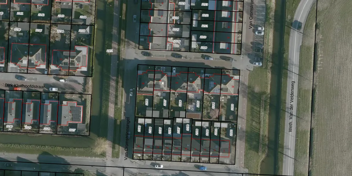 Gebruik de zoekbalk of klik op een perceel voor informatie over de adressen binnen dit perceel.