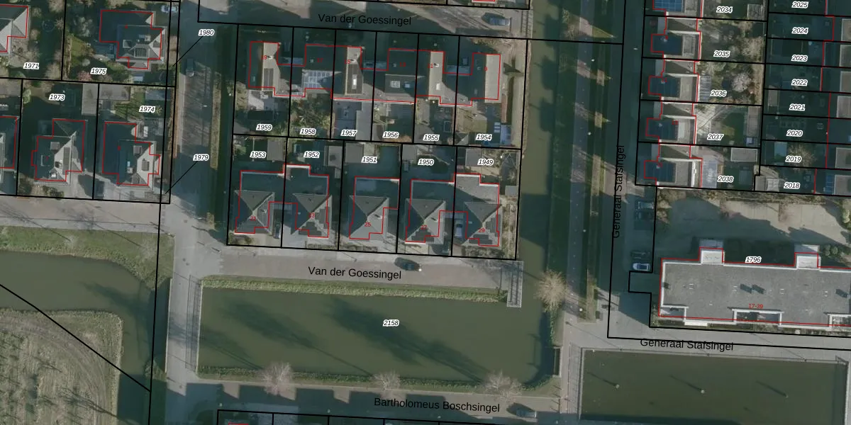 Gebruik de zoekbalk of klik op een perceel voor informatie over de adressen binnen dit perceel.
