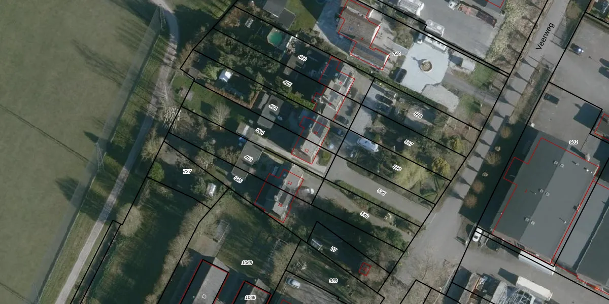 Veerweg 12 is gelegen op kadastraal perceel NMD00D594. Deze kadastrale aanduiding is uniek en wordt gebruikt door het Kadaster om eigendomsrechten en andere zakelijke rechten vast te leggen. Het perceel maakt onderdeel uit van de kadastrale gemeente Numansdorp.