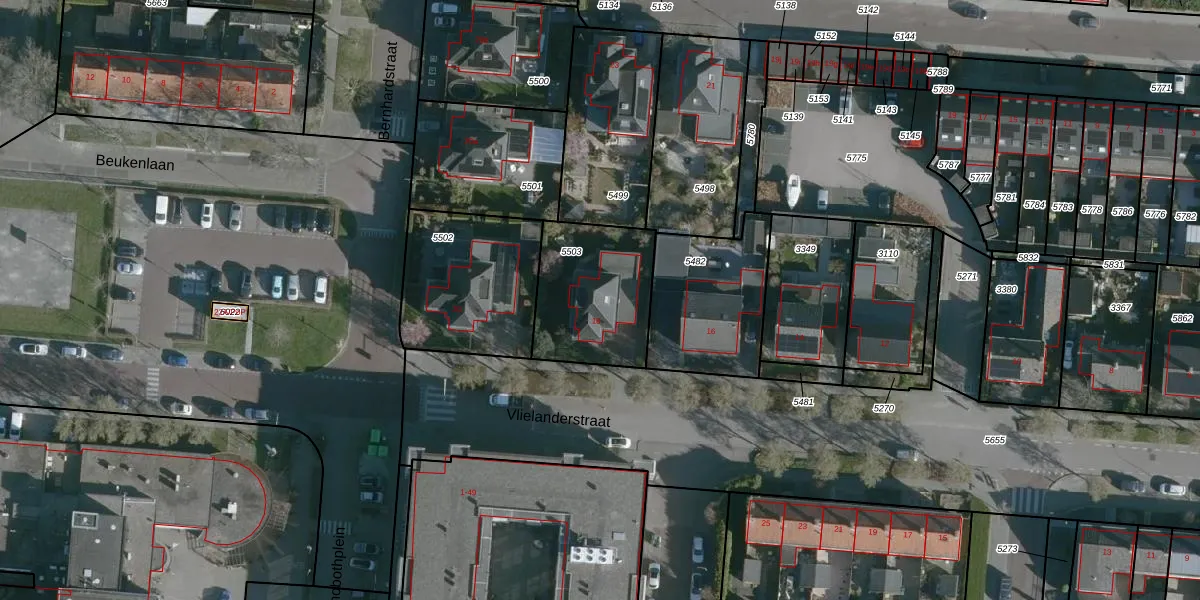 Gebruik de zoekbalk of klik op een perceel voor informatie over de adressen binnen dit perceel.