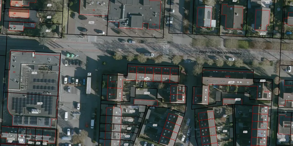 Weth. Van der Veldenweg 20 is gelegen op kadastraal perceel NMD00F1383. Deze kadastrale aanduiding is uniek en wordt gebruikt door het Kadaster om eigendomsrechten en andere zakelijke rechten vast te leggen. Het perceel maakt onderdeel uit van de kadastrale gemeente Numansdorp.