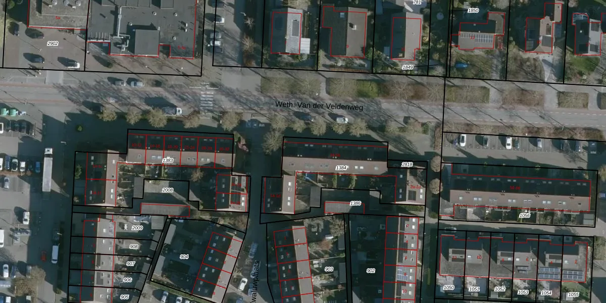 Het perceel waarop Weth. Van der Veldenweg 38 staat heeft een oppervlakte van 919 m². Dit is een groot perceel. De perceeloppervlakte wordt geregistreerd door het Kadaster. Gedetailleerde informatie over de maten van dit perceel kunt u vinden in het rapport Kadastrale kaart met maatvoering van Weth. Van der Veldenweg 38.